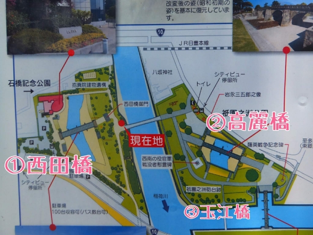 残った3つの橋「玉江橋」「西田橋」「高麗橋」を移設、復元したのが今回ご紹介する石橋記念公園。江戸の空気が保存された、穏やかな公園です。
