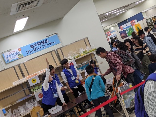 会場出口ではアンケートを実施しています。こちらに答えると島の特産品が当たるガラガラにチャレンジできるのです。参加条件も無し、ハズレも無しなので挑戦しない理由がありません!