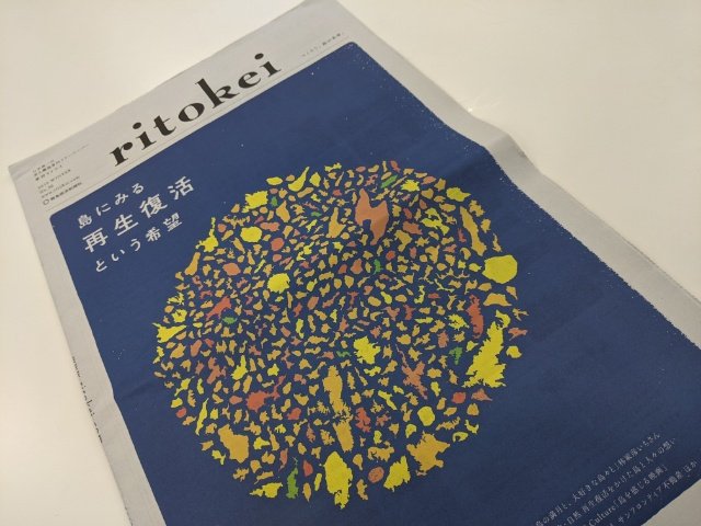 こちらは友人離島専門のフリーペーパーritokei(リトケイ)。離島経済新聞社が発行する、有人離島にフォーカスしたメディア。表紙に描かれているカラフルな丸は、日本の島々が集まったサークル。シルエットだけの島を10個以上当てられたらなかなかの島好きではないでしょうか。