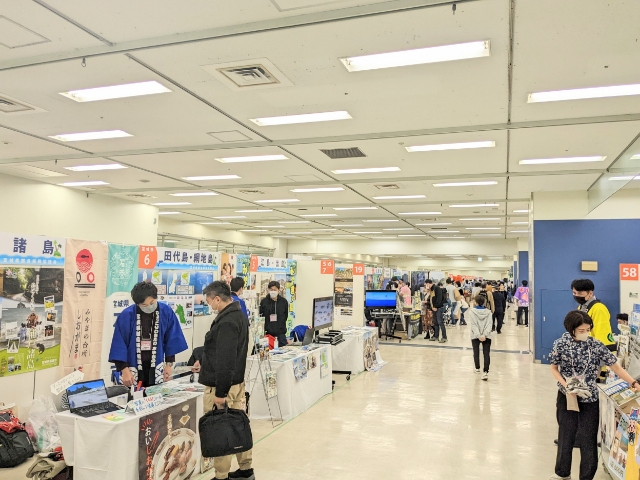 各島の観光協会の方々を中心に広がる離島ブース。出展者の方々はみなさんフレンドリーで、通りががかると気軽に声をかけてくれます。
