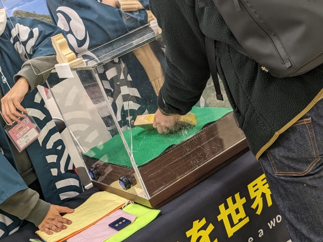 情報はもちろん、ちょっとした体験を用意したいるブースも。佐渡島では「金塊レプリカつかみ体験」を開催中。島内の佐渡金山に行かないと体験できないメニューが出張体験を行っています。毎年行われている体験ですが、いつも人気で人だかりができていることもしばしば。ちなみに私は以前、成功したことがあります・・・!