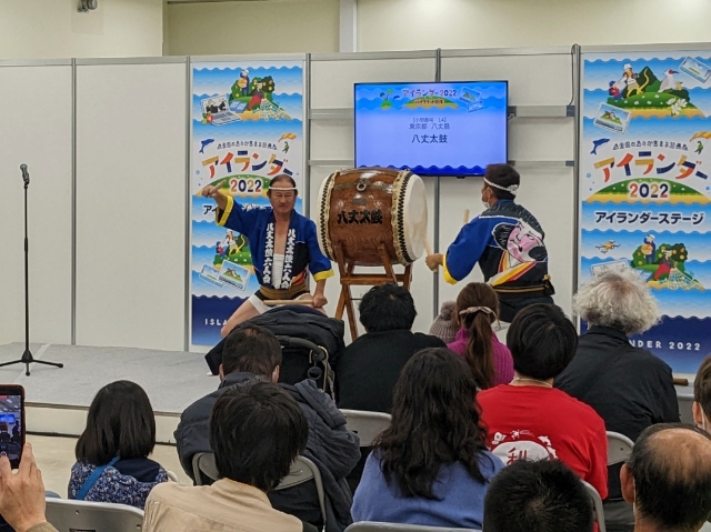 また、会場にはステージも設置されており、太鼓、歌、踊りなどの伝統芸能が披露されます。私が訪問した際は八丈島から来た八丈太鼓の迫力ある演奏が会場を包み込んでいました。