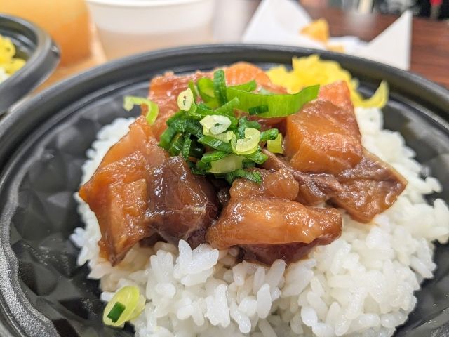 いつも名前は見かけておりずっと気になっていた「鰤王漬け丼」(鹿児島県・長島)。やわらかいブリが甘口醤油でしっかり味付けられています。