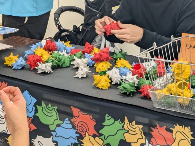 山形県の飛島といえばスタッキングサザエ!ペイントされたカラフルなサザエをただ積むだけのシンプルな遊びです。