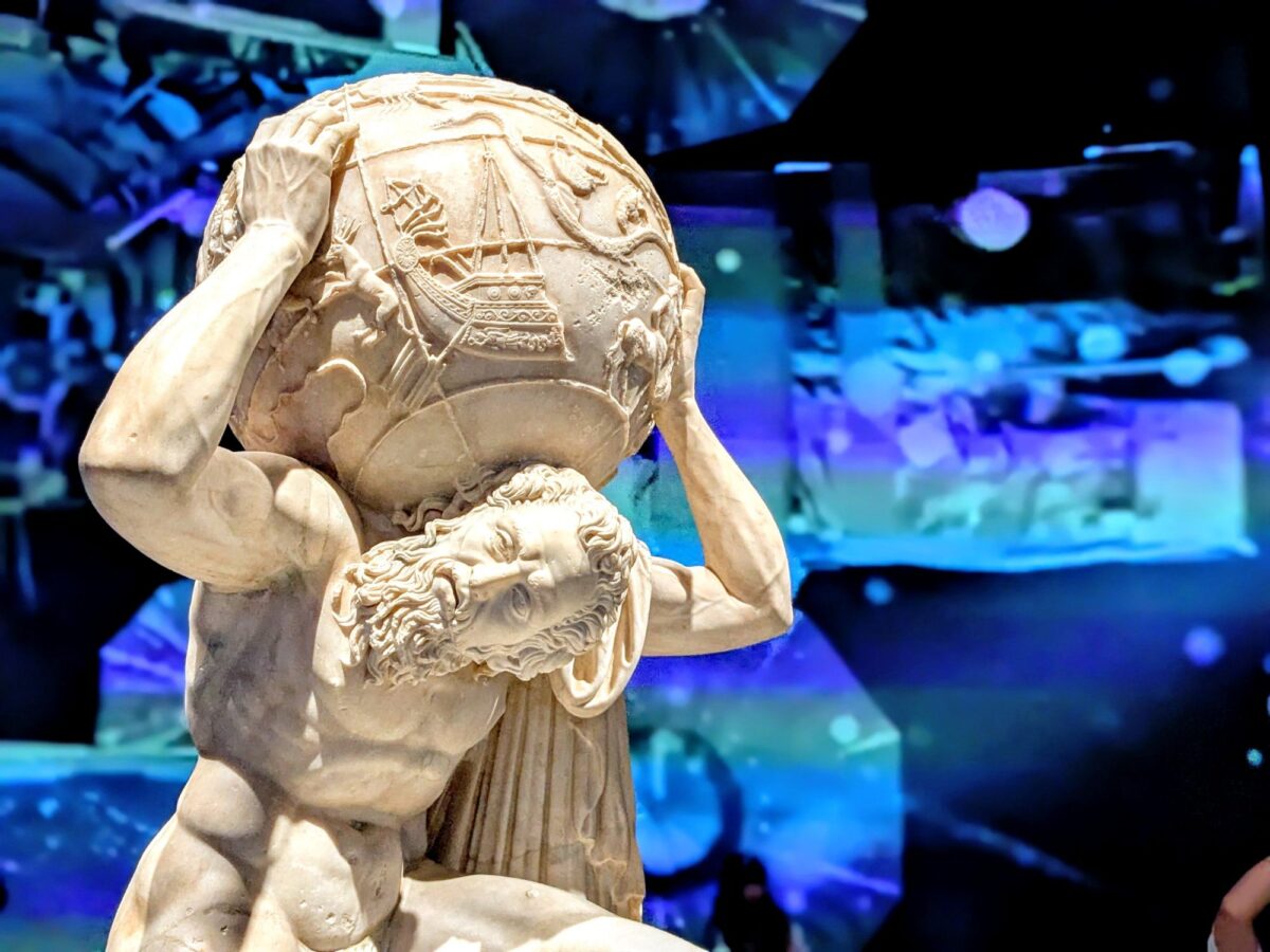館内で最も注目を集めていた作品が古代ローマ時代の彫刻《ファルネーゼのアトラス》。大理石を使用した彫刻作品で高さは約2m、重さは2トンにも及びます。
