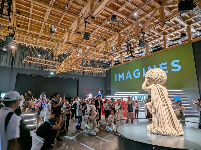 おそらく全パビリオンで最も並ぶ時間が長い超人気パビリオン。内部は彫刻作品や絵画が並ぶ、まるで美術館のような仕上がりとなっています。古代ローマの彫刻やダ・ヴィンチ直筆のスケッチなど、他ではなかなか見られない貴重な展示品がたっぷりと詰まっています!