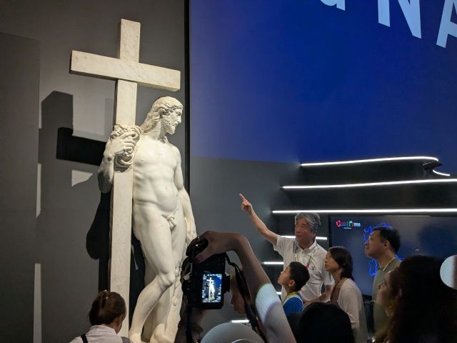 5月中旬より展示を開始したのがミケランジェロの《キリストの復活》。高さ約2mの大理石製の彫刻で、日本では2度目の公開であるそう。
