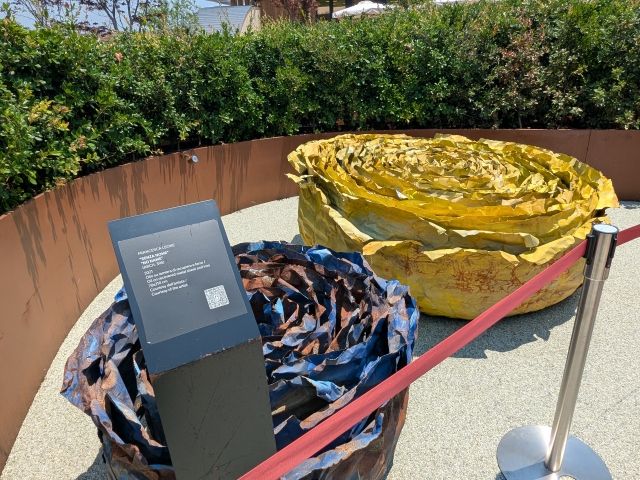 ここにもいくつかの作品が屋外展示されています。フランチェスカ・レオーネの《No Name》は、リサイクル素材を使用した作品。
