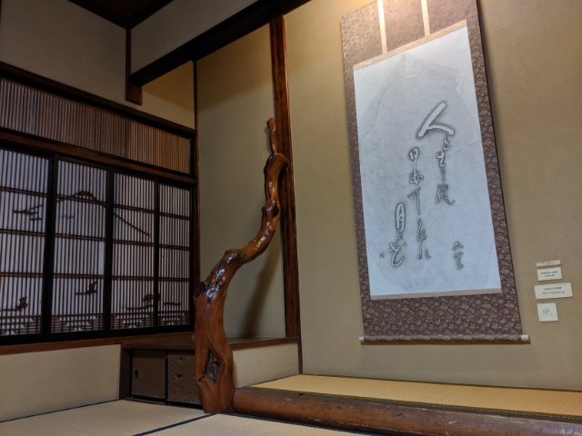 成形せずに木の形をそのままいかしたビャクシンの変木や、富士山を描いた組み入れ彫刻など、細部にもこだわりを感じる素敵な館内。