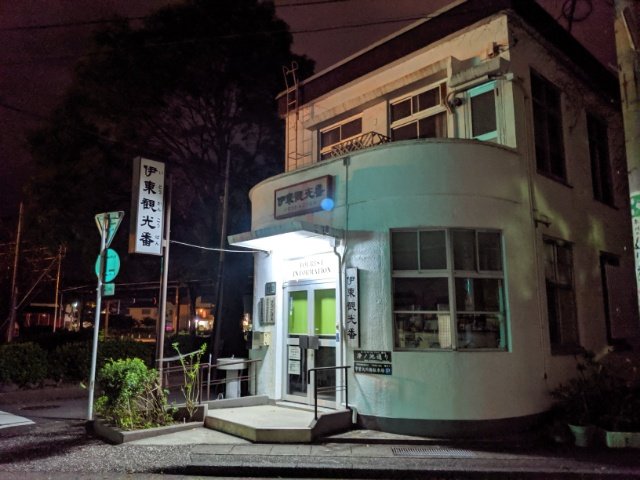 もともとは静岡県で最も古い交番でしたが、現在は観光案内所として「観光番」という名前に変わり、旅人を出迎えています。夜なのでもちろん終了していました。
