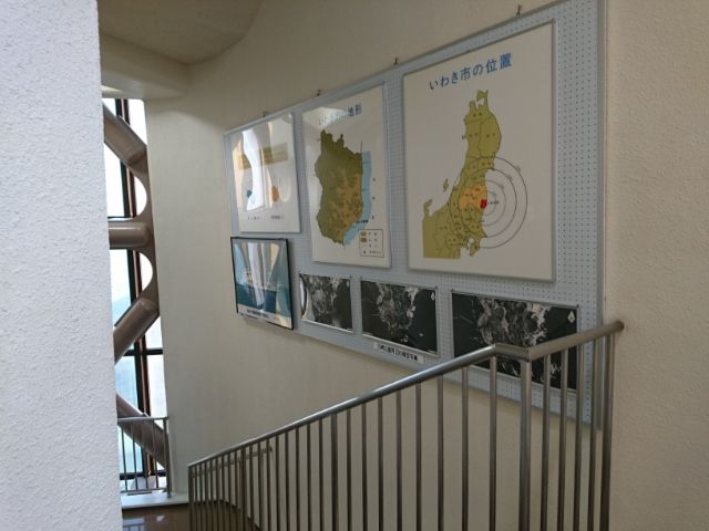 途中には「海の勉強室」も。展示室があるのかと思いきや、どうやら壁に張られたパネルのことを指しているようです。漁法や魚の種類、小名浜港のデータなど様々な内容のパネルを見ながら降りていきます。