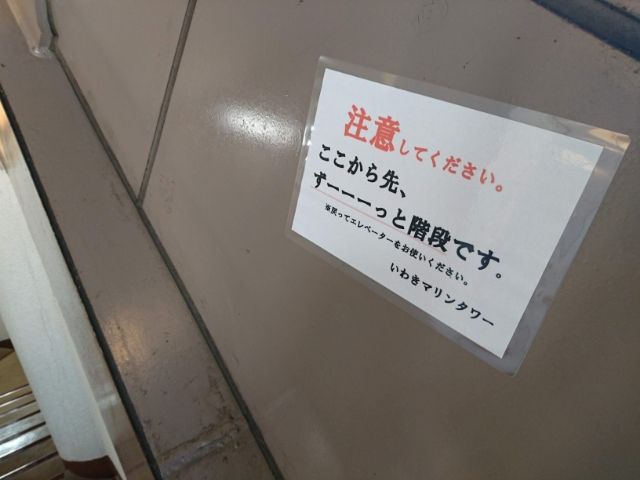 「注意してください。ここから先、ずーーーっと階段です。※戻ってエレベーターをお使いください。」と記された注意書きも。脅されているような気もしますが、逆に行きたくなってしまうのは私だけでしょうか。