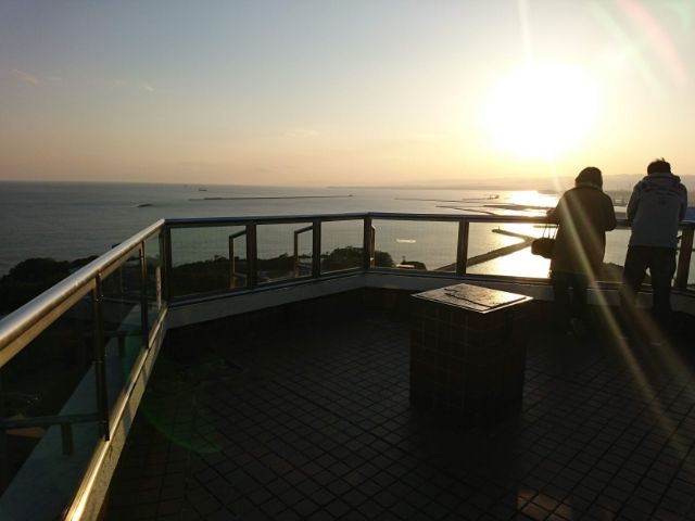 日没に近い時間に登ったところ、あざやかに色づくサンセットの姿も。このタワーは17:00までの営業であるため、日没時間の早まる冬場でないと見ることができない光景です。