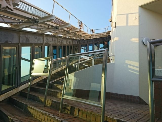 展望タワーは全国各地に数多くあれど、本当のてっぺんに登れるタワーは非常にレア。ビルだったら大阪の「梅田スカイビル・空中庭園展望台」や「六本木ヒルズ・スカイデッキ」も屋上展望台があってとても開放的ですが、こちらのいわきマリンタワーはなんといっても海沿いというロケーションが魅力。吹き抜ける強力な海風、そして狭い足場がスリル満点です。