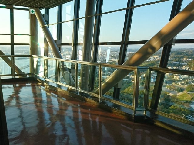 展望フロアはコンパクトですが、壁一面ガラス張りで明るく開放的な雰囲気。天井も高くてすっきりしております。