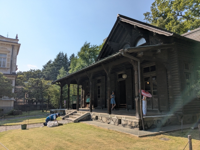 というわけで、「洋館」「和館」「撞球室」の3つの建築の見学を終えたところで、次は「国立近現代建築資料館」へと向かいます!別の施設ですが、実質おなじ敷地内にある資料館で、土日は旧岩崎邸庭園を通らないと入ることができません。企画展の期間のみオープンしているので、旧岩崎邸庭園に向かう際はこちらのスケジュールも確認してから向かうと、セットでめぐれてお得な気分になれます!