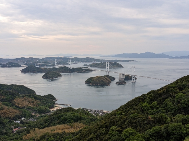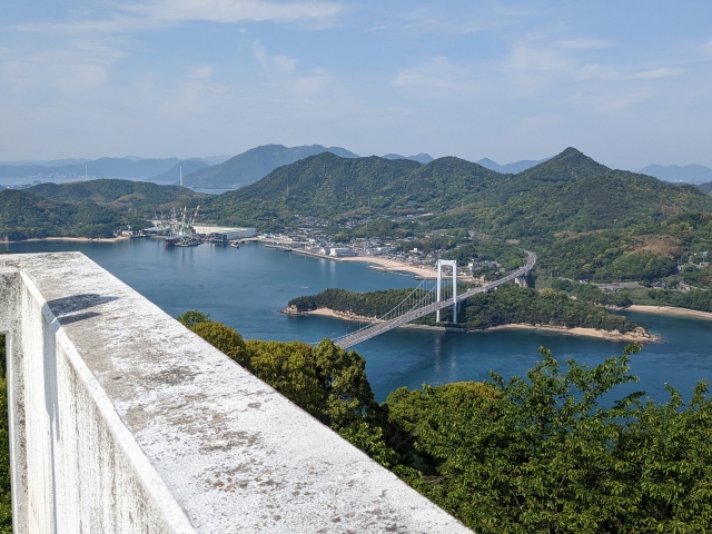 大島の中でも人気が高いのは亀老山展望公園。島の南部にそびえる亀老山(きろうさん)の山頂にある展望台で、しまなみ海道を中心とした多島美を拝むことができます。