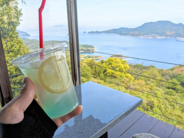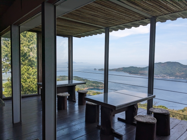 カレイ山展望公園に来たらぜひ立ち寄りたいのが遠見茶屋。展望台のすぐ傍にある絶景カフェです。