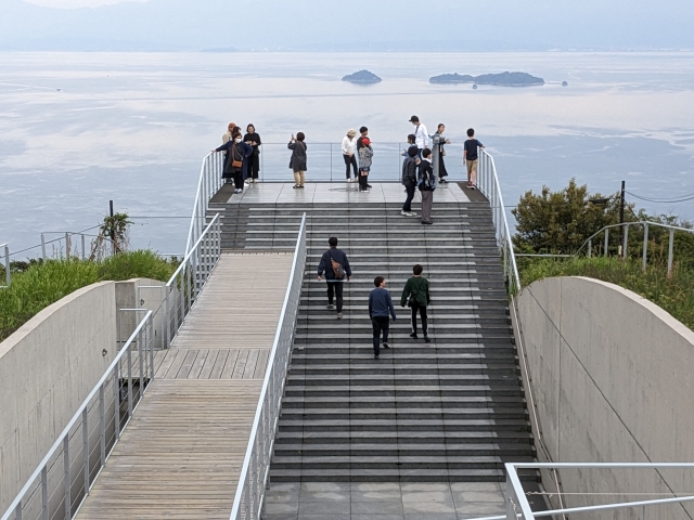 階段を登ると、伯方・大島大橋でつながる伯方島、橋を支える見近島など、しまなみ海道らしい光景を見ることができます。