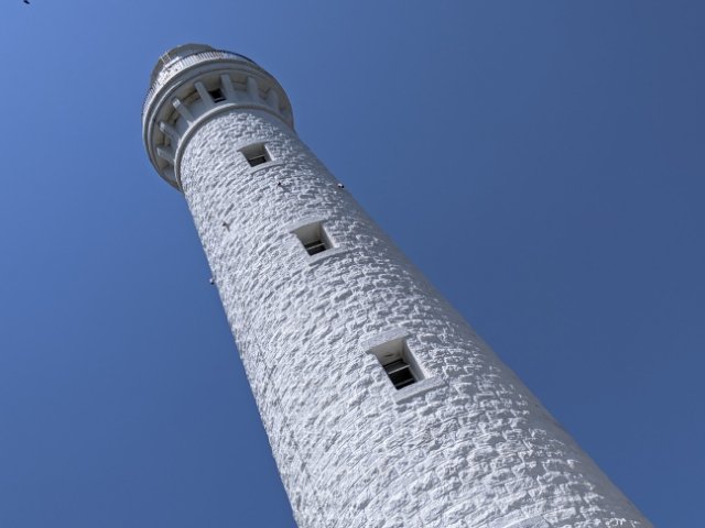 出雲日御碕灯台の地上からの高さは43.65m、石造灯台としては日本一の灯塔の高さとのこと。改めて見ると、かなりの大きさです。