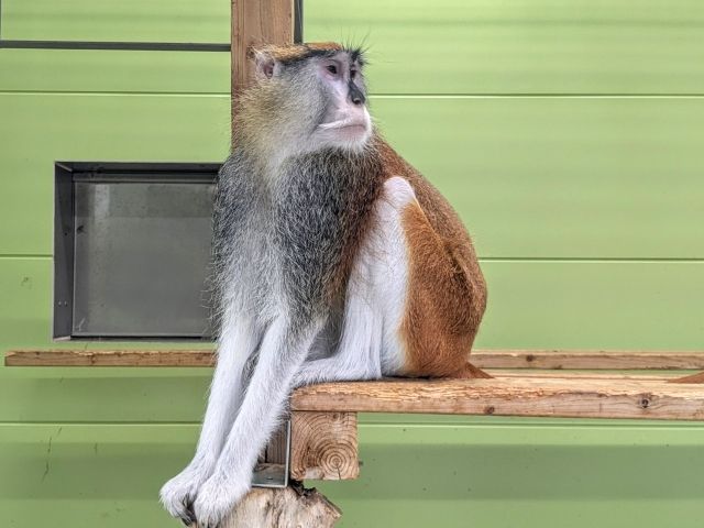 カメラを構えると、撮られることをわかっているかのような決めポーズをとってくれる個体も。リッチなヒゲがイケオジ感あふれるパタスモンキー。時速55kmという、とんでもない速さで走ることができます。