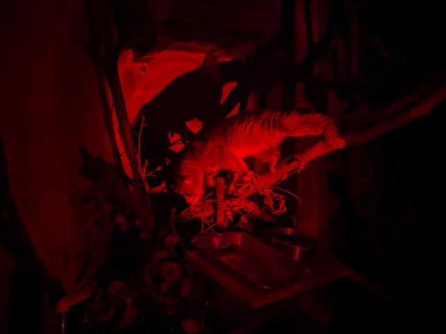 屋内展示もあります。「夜行性サルの世界」では、赤いライトを使ってサルを探すという楽しい仕掛けも。西アフリカのポトというサルがゆっくり動く姿を見ることができました。