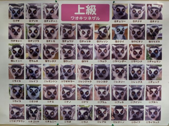 最後の1枚はこちら、ワオキツネザルの名前一覧。