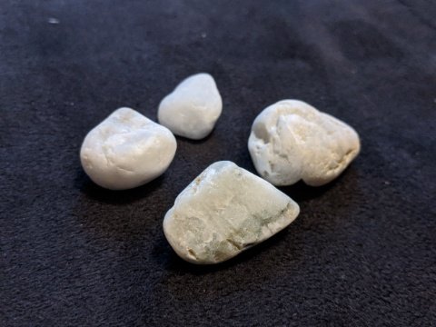 拾った石の中で、4つが光を通しました!これだけで翡翠と決まったわけではありませんが、なんだかキレイなので既に満足。