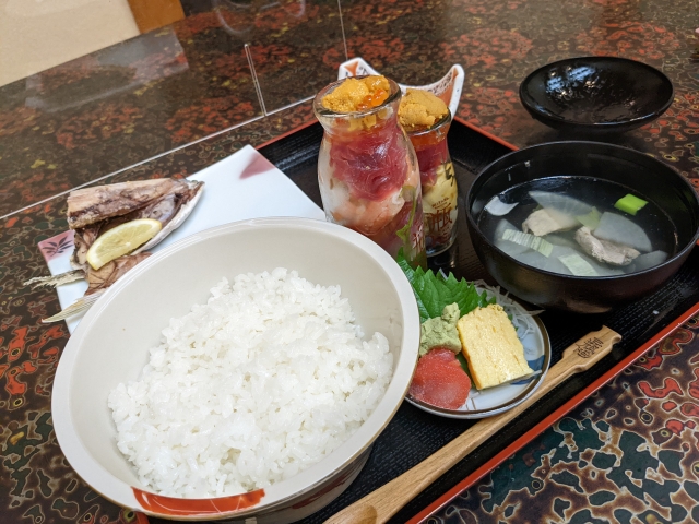 瓶ドンはもちろん、小鉢や汁物、さらにはカマ焼きまでもついています。いずれもめっちゃ美味しくて、なんだか申し訳ない気持ちになってきました。