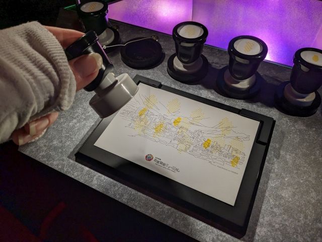 入口でもらったポストカードに好きな色・形の湯けむりを押して自分だけのオリジナル温泉郷を作ることができるのです。