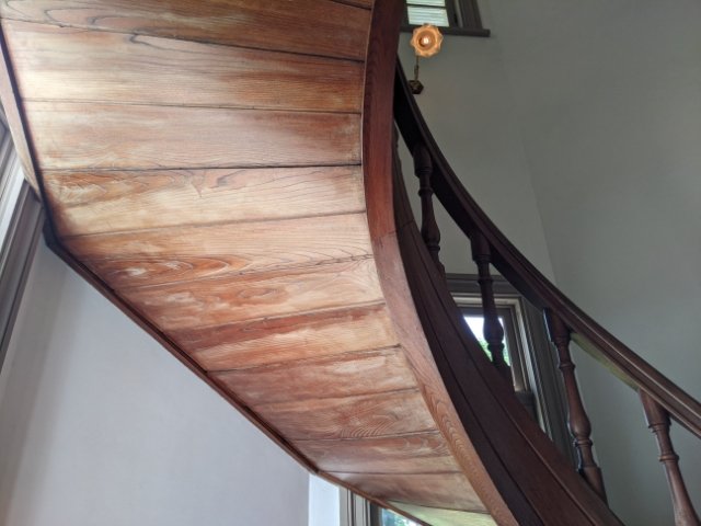 2階から見るとそこまで違和感無く見えます。八角形の壁に沿って組まれており、建物の外から見るとこの部分が八角尖塔として独立しているように見えます。