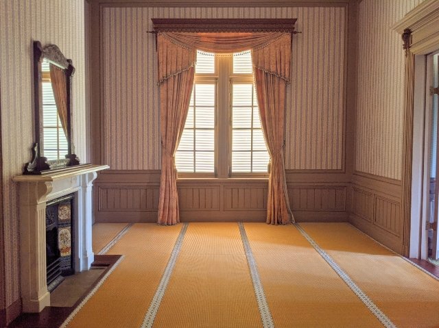 洋風な館内において唯一畳敷きの和洋折衷な部屋が御寝室。こちらも嘉仁親王の寝室として使用された部屋のようです。