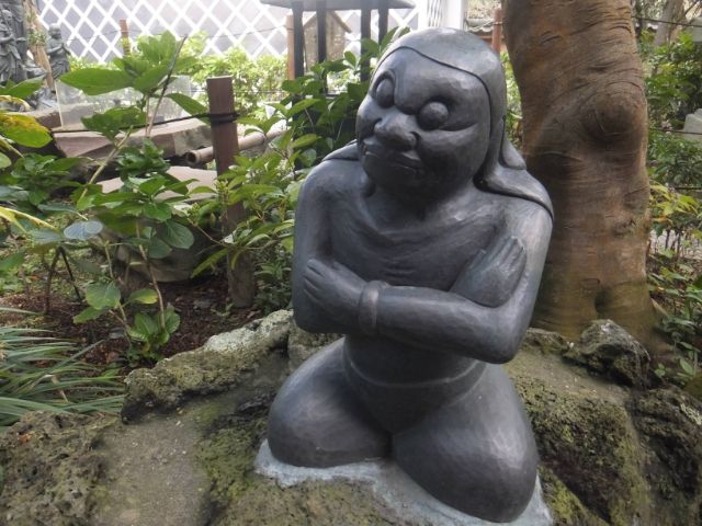 目を閉じているのか開いているのか、人間のようでどことなく鬼のようにも見える不思議な魅力があります。この像は、明治時代に「日本のロダン」と称された彫刻家・荻原碌山(おぎわら ろくざん)の作品に大きな影響を与えたそう。