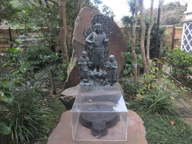 いくつか置かれた像の中で、一際インパクトがあったのがこちらの文覚上人荒行像。成就院に伝わる木像「文覚」のブロンズ製レプリカとのことです。