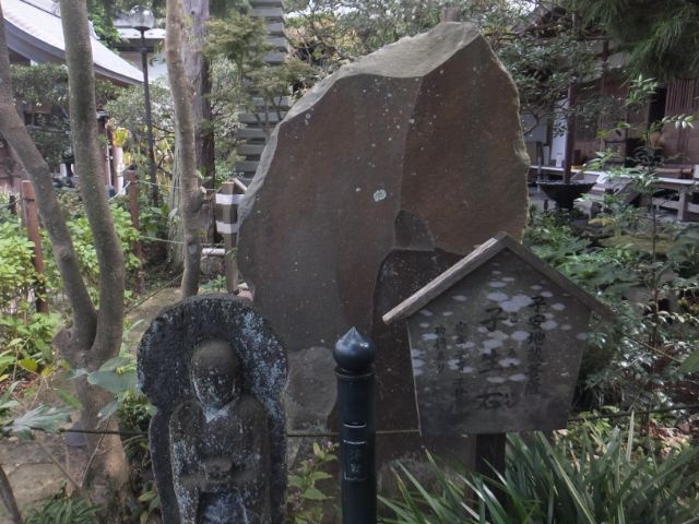 こちらは「子安地蔵菩薩と子生石」。その名の通り、子授け・安産・子育ての功徳があるそうです。奥にある大きな石が子生石かと思ったのですが、どうやらお地蔵さまの手前にある小さな丸い石がそうらしい。写真では見切れてしまいました。