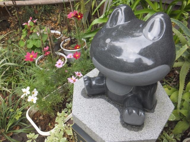 中には、ほっこりするデザインの「なでかえる」も。幸せを呼ぶ像とのことですが、なんだか交通安全のキャラクターみたいでかわいらしい姿。皆に撫でられているおかげか、つるつるです。