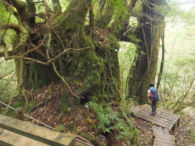 縄文杉コース、最後の屋久杉は夫婦杉。2本の屋久杉が手を繋ぐように聳えております。