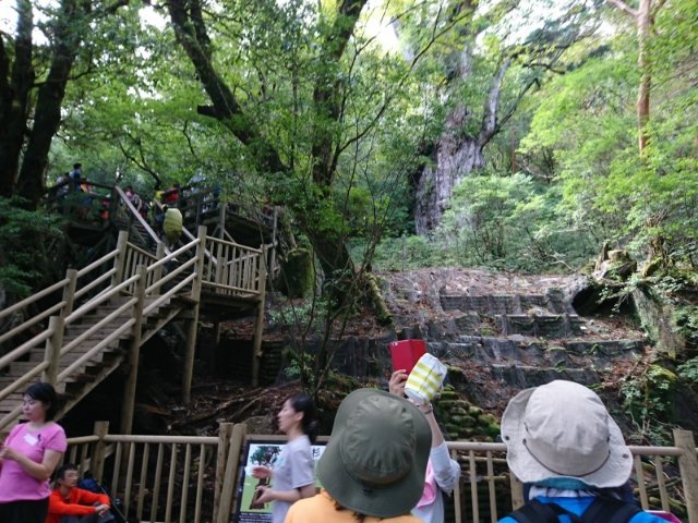ウッドデッキが2段階となっていますが、いずれ近い方は撤去される可能性があるとか。この角度からの縄文杉は見ることができなくなるかもしれません。