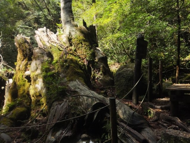 大株歩道で最初に出会う名のある屋久杉が、こちらの翁杉。かつては縄文杉に次ぐ太さを誇る屋久杉でしたが、2010年に倒れてしまったため切り株の姿になっております。いつか縄文杉もこのような姿になってしまうのでしょうね。