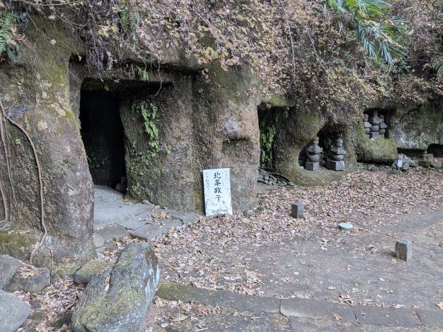 その隣のやぐらが源実朝のお墓。北条政子の息子であり、鎌倉幕府3代目将軍を務めた人物です。鶴岡八幡宮にて右大臣拝賀の儀式が執り行われた際、2代目将軍・源頼家の遺児である「公暁」に命を奪われこの世を去ってしまいます。これにより、鎌倉幕府の源氏将軍は断絶してしまいました。