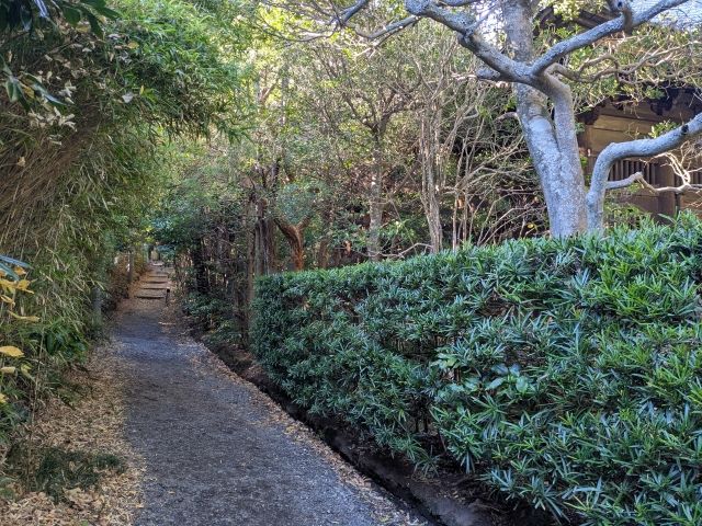 伽藍をほとんど見ることができない寺院ですが、境内奥の墓地に残るやぐらを見ることができるそう。ということで、本堂向かって左側の道を進んでみることに。