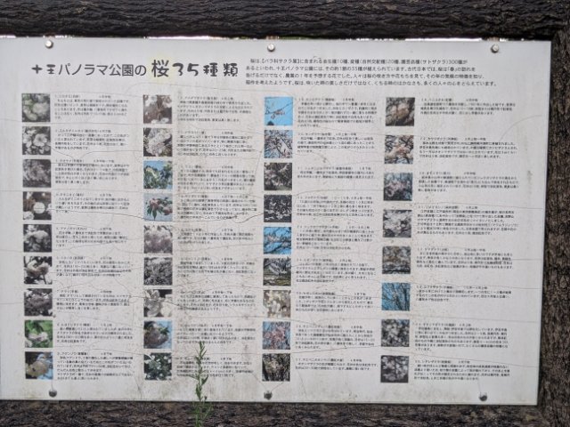 この公園は桜の名所としても知られていますが、園内で見ることができる桜はなんと35種類!駐車場にはそれぞれを丁寧に解説した案内板もあります。情報たっぷりで読み応え抜群。桜に対する情熱がひしひしと伝わってきます。