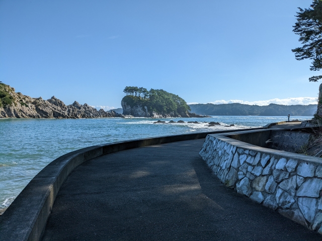 ということで、第一駐車場に到着して、浄土ヶ浜散策はおしまい。レストハウスオープン前であり、サッパ船も欠航だったので軽く散歩した程度ですが、潮風を感じながらの海歩きはとっても楽しかったです。