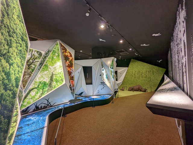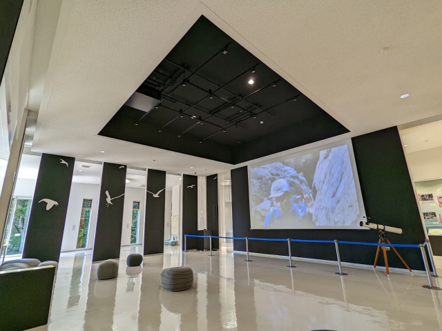 とってもキレイでデザイン性の高い館内。大きな体験シアターでは「三陸海岸の大景観」が映し出されます。