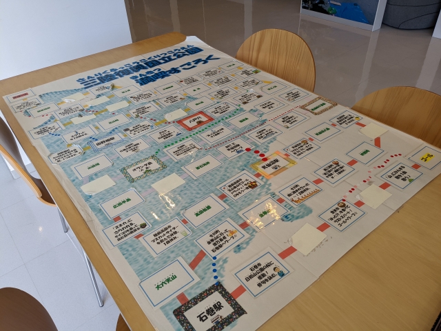 様々な展示がある中で、気になったのは「三陸復興国立公園満喫すごろく」。八戸、種差海岸から始まり、北山崎、浄土ヶ浜、気仙沼、金華山、石巻、登米市まで続いていくすごろくで、各マスに土地に関する項目が書かれておりとってもおもしろい。途中には、「スクワット10回」、「山に関する歌を一曲歌う」といった厳し目の指示マスも。友達とやったら盛り上がりそうです。