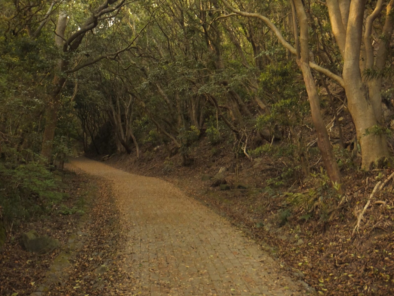 砲台跡への道は、うっそうとした森の中。落ち葉の多い登り坂ですが、きちんと整備されているので歩きやすいです。
