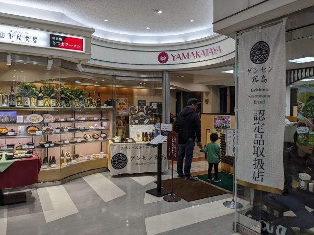 鹿児島空港内には食事をとれるお店が2階に2店舗、3階に4店舗と合計6店舗あります。人気なのは「山形屋食堂」。山形屋といえば、鹿児島にて江戸時代より続く百貨店。黒豚カツ丼、白熊、きびなご刺身、さつまラーメンなどの鹿児島グルメに加えて、名物のあんかけかた焼きそばも扱っています。