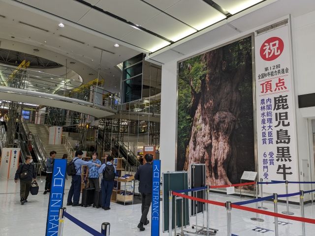 鹿児島空港名物といえば、壁に貼られた屋久杉パネル。屋久島の奥地に残る大きな縄文杉の、おそらく等身大と思われる巨大な姿はかなりの存在感です。