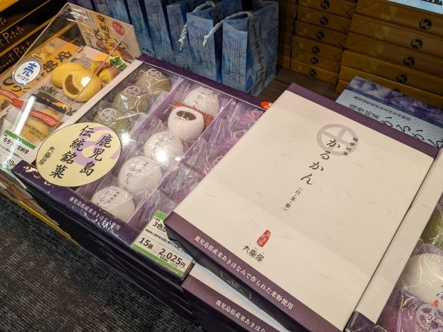 定番は「かるかん饅頭」やソーセージなどの黒豚加工品、薩摩芋を使ったスイーツなどなど。鹿児島ラーメンや西郷どんグッズも人気です。