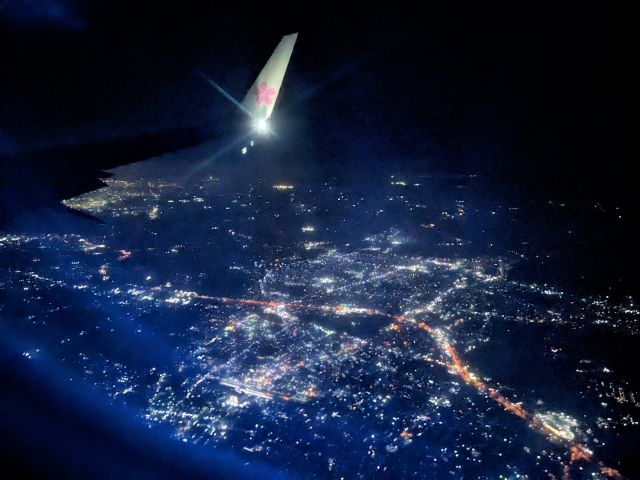 窓の外に街の明かりが広がってきたら、羽田空港はもうすぐぞこ!